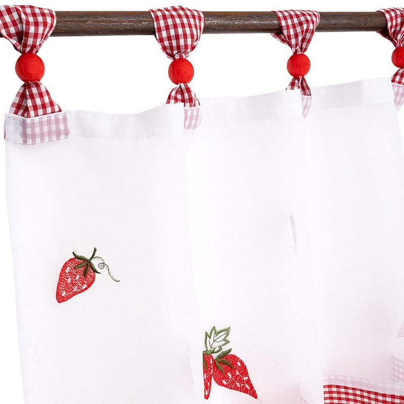 La cortina velo cenefa frutilla Chantilly de 135 x 45 cm es ideal para complementar la decoración de la cocina, aportando un toque colorido y hogareño sin bloquear la entrada de luz natural. Su diseño tipo cenefa permite vestir ventanas de forma sutil, creando un ambiente más luminoso y agradable.