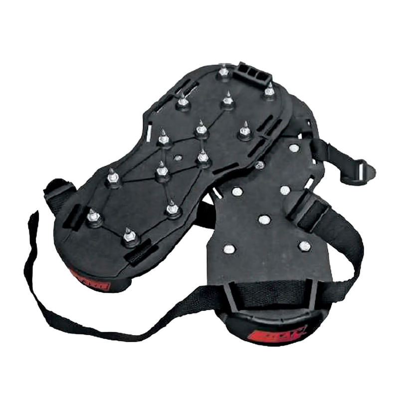 Las zapatillas aireadoras Lizcal Tuspike Shoespar están diseñadas para optimizar la salud del césped, mejorando su oxigenación y drenaje natural. Sus púas de acero penetran eficazmente el suelo sin esfuerzo, facilitando la regeneración del pasto.
